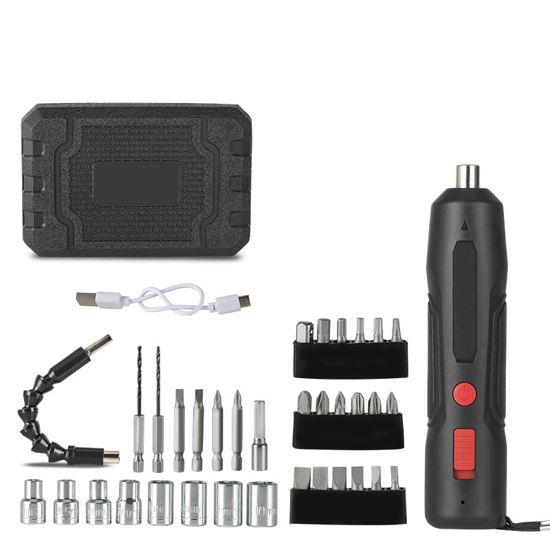 Compact Kit: Includes screwdriver, bits, USB cable, and manual.
